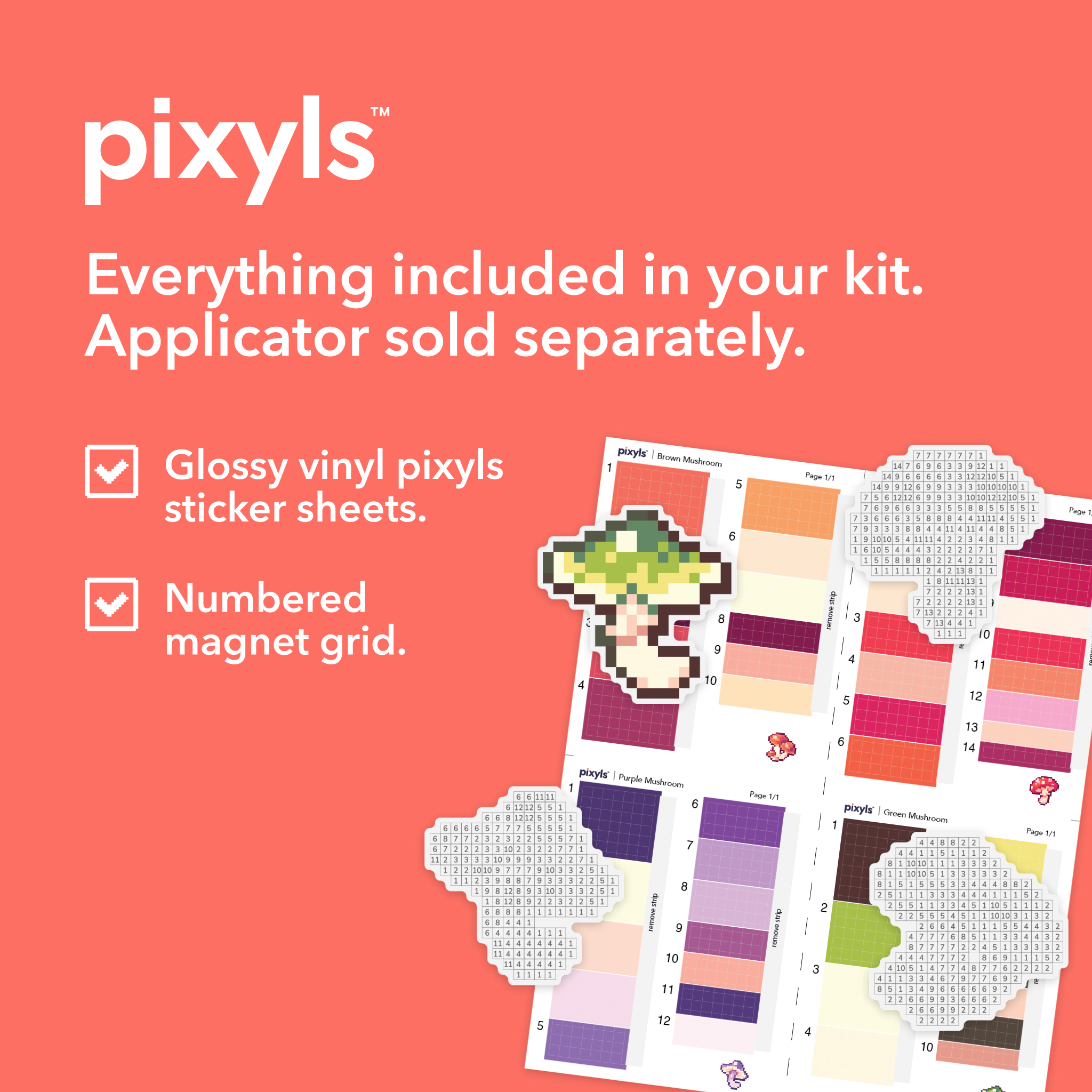 Inside the kit, you’ll find everything you need to bring your design to life, while our applicator tool is sold separately. Stick your finished magnet on a fridge, whiteboard, or locker and enjoy a handmade reminder of the calming joy of pixel art.