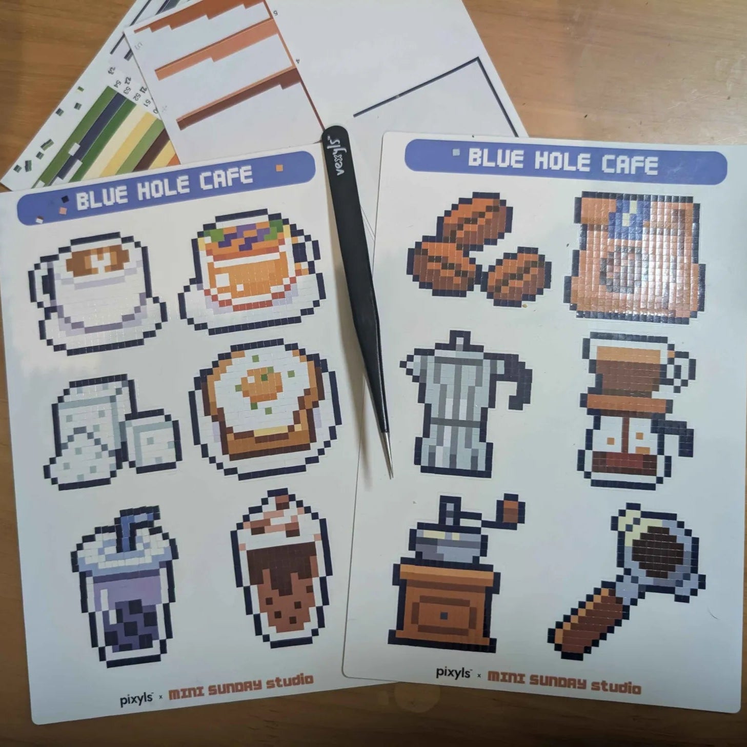 Each sheet features artwork developed exclusively by our team of real pixel artists (absolutely no AI), paired with premium glossy vinyl stickers that shine as you place them. Every sticker locks into place like a puzzle piece, gradually building a colourful design square by square.