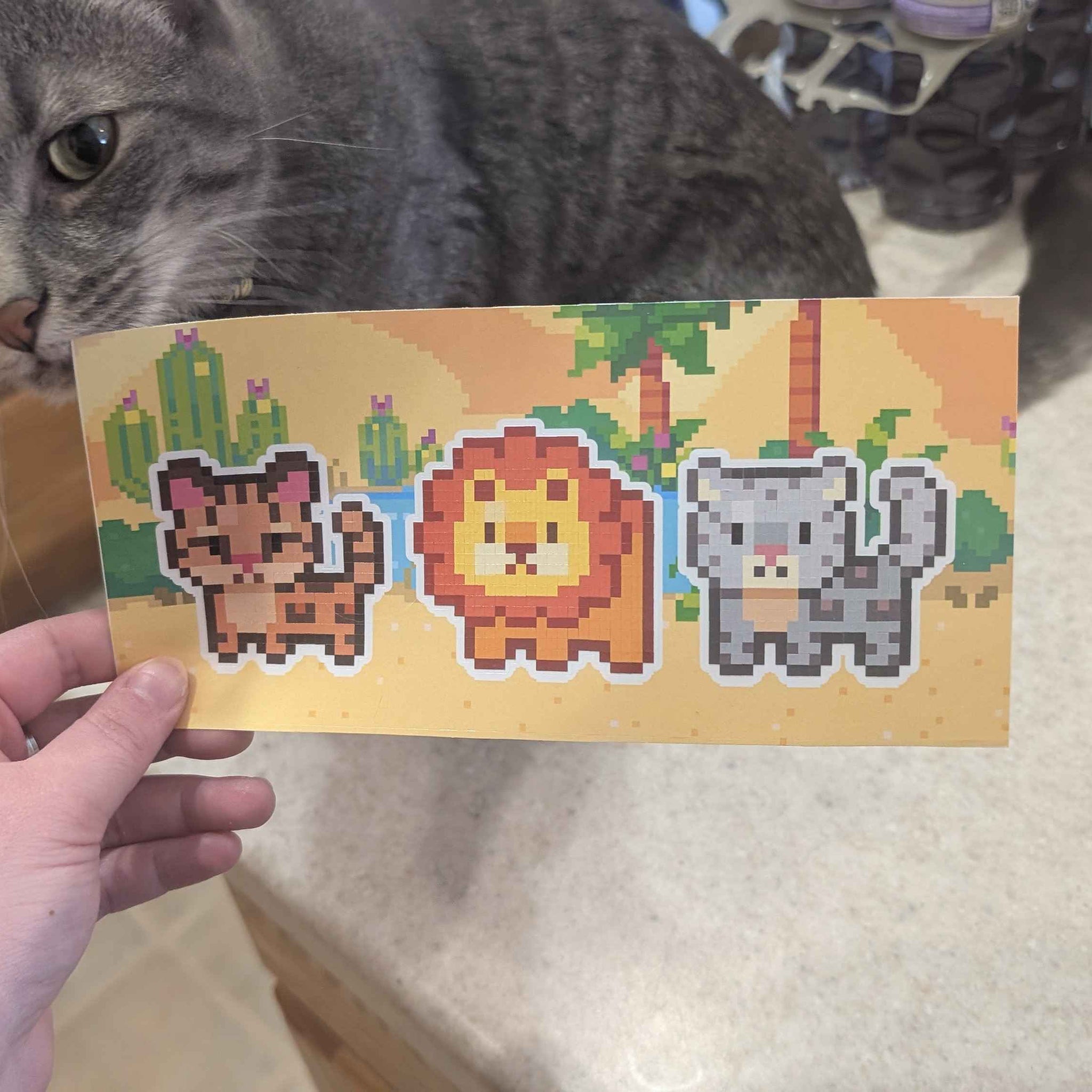 Each sheet features artwork developed exclusively by our team of real pixel artists (absolutely no AI), paired with premium glossy vinyl stickers that shine as you place them. Every sticker locks into place like a puzzle piece, gradually building a colourful design square by square.