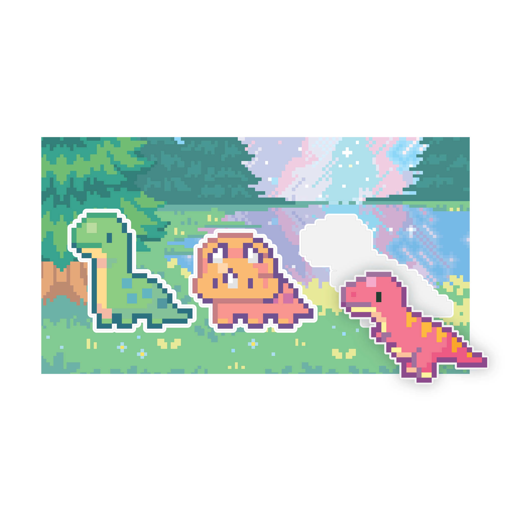 Each sheet features artwork developed exclusively by our team of real pixel artists (absolutely no AI), paired with premium glossy vinyl stickers that shine as you place them. Every sticker locks into place like a puzzle piece, gradually building a colourful design square by square.