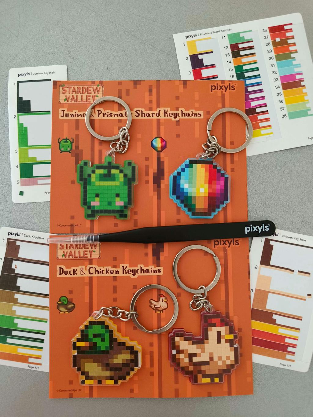 Stardew Valley Junimo and Prismatic Shard Keychain Set